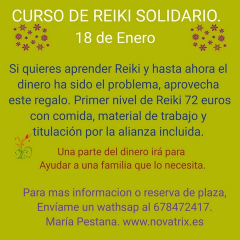 CURSO DE REIKI USUI PRIMER NIVEL✨✨sábado 18 de enero, el curso estará enriquecido con Luz sonido y color. Si quieres reordenar tu vida y conectar para autosanarte y ayudar a otros a conseguirlo, no te pierdas esta ocasión. Recibirás la titulación avalada por la alianza Española de Reiki.