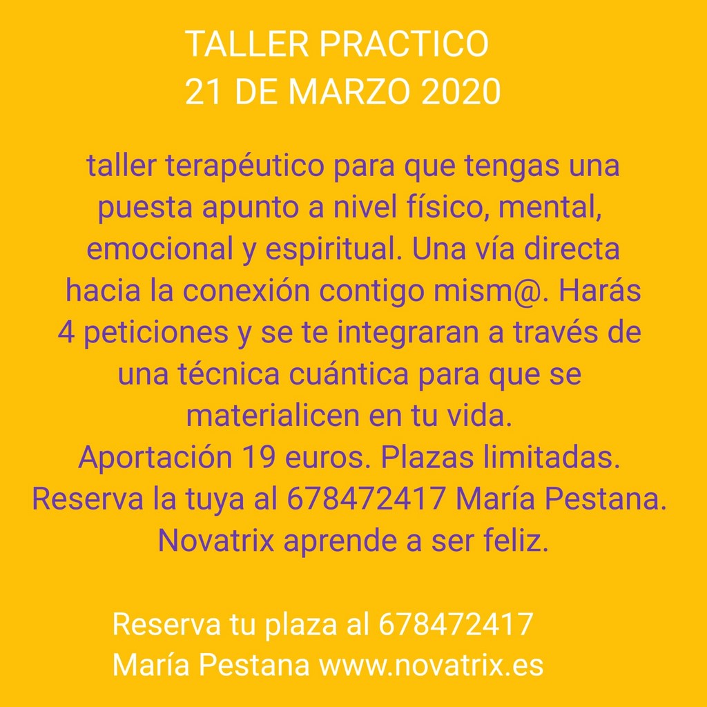 Aportación 19 euros. Plazas limitadas. Reserva la tuya al 678472417 María Pestana. Novatrix aprende a ser feliz.