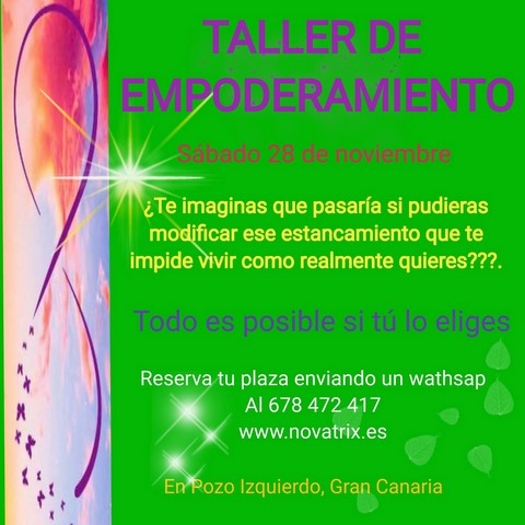 impartiré un taller vivencial para conseguir que mibioices ese estancamiento que te impide vivir la vida que te mereces. Reserva tu plaza enviando un wathsap al 678 472 417. Todos los asistentes recibirán un kit de gemas que les ayudará en el proceso